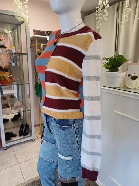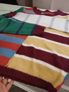 Hermoso suéter de rayitas multicolor. Es delgadito y muy hermoso, calientito y suavecito. Está divino 😻 tiene detalles de uso