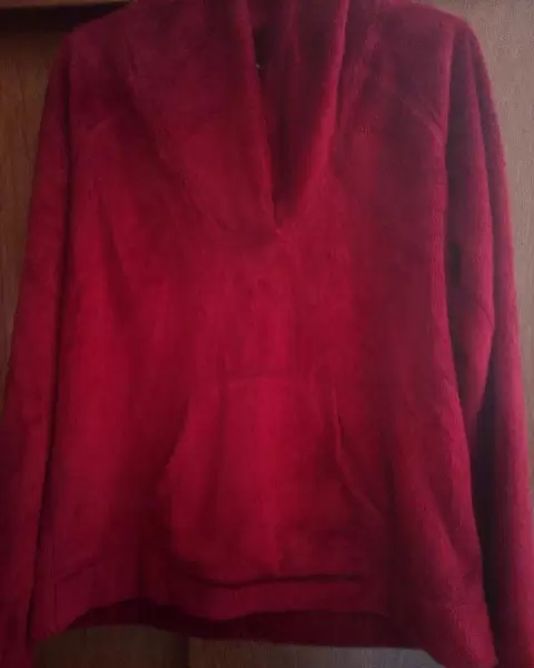 Suéter rojo. Es un suéter muy calientito con un bolsillo al frente,de textura muy suave.El suéter es un rojo oscuro Medidas:50cm de ancho59 cm de largo59 cm de largo manga