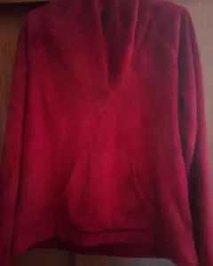 Es un suéter muy calientito con un bolsillo al frente,de textura muy suave.El suéter es un rojo oscuro Medidas:50cm de ancho59 cm de largo59 cm de largo manga