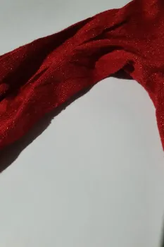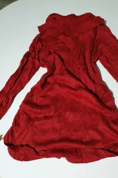 Esta hermoso Es color rojo brillosa, detalles de uso no rota hilitos se muestra en foto esta en su color intenso es largito original talla xl la tela estira