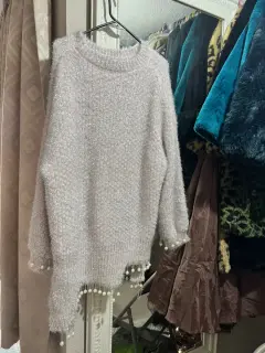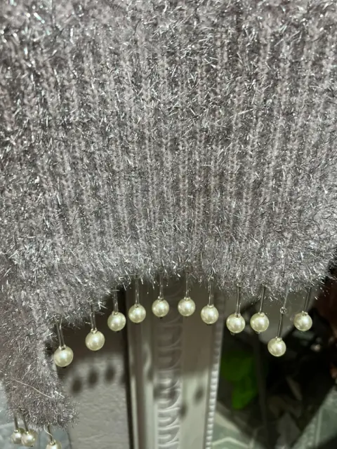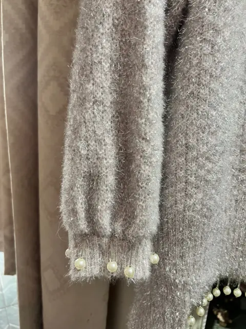 Hermoso suéter rosa con destellos plateados, y decoración del perlas en las orillas, talla g es largo y muy cómodo !!!