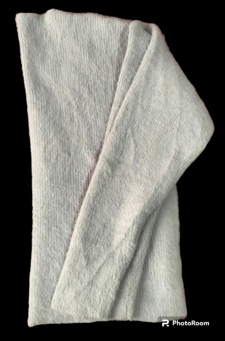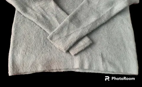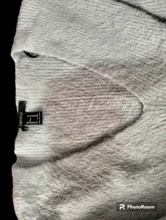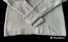 Suéter de textura suuuuuper suave, el color no se aprecia bien en la foto, pero es un azul muy ligero. La talla es M pero la tela estira muchísimo, probablemente quede a una talla grande. Sin detalles, muy bonito.