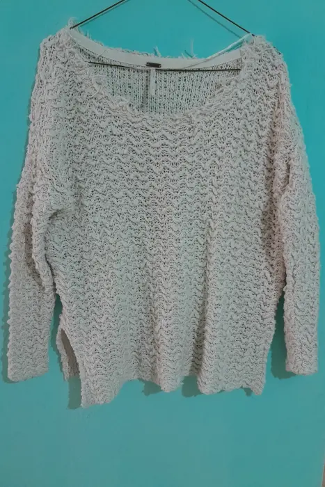 Suéter tejido blanco. ¡Dale un toque acogedor y elegante a tus looks con nuestro suéter tejido de mujer! Su tejido suave y cálido te envolverá en una sensación de comodidad durante los días fríos. Además, su diseño tejido a mano le otorga un aspecto artesanal único, resaltando tu buen gusto y apreciación por los detalles.El suéter presenta un corte femenino y favorecedor que realza tu figura. Su versatilidad te permite combinarlo con diferentes prendas, ya sea para un look casual con jeans o para una ocasión más elegante con una falda o pantalones de vestir.