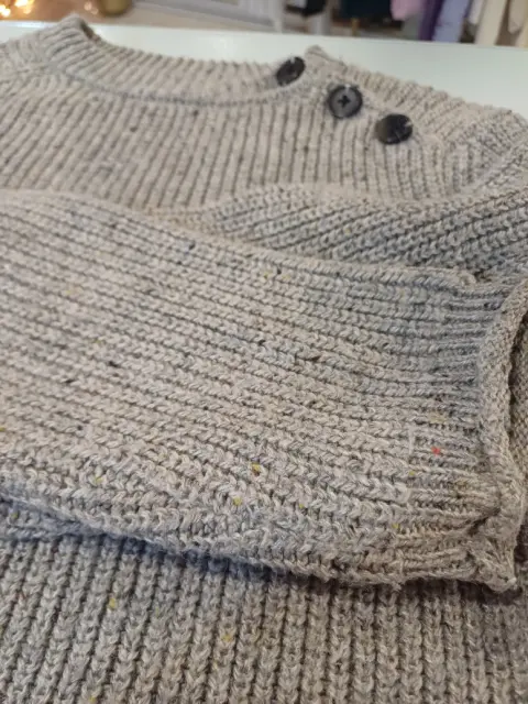Hermoso suéter tejido color café. Es muy calientito. Tiene tres botones a un costado del cuello. Dice talla 10 pero queda perfecto hasta una talla chica de dama.Las medidas son hombros 38 CM, ax a ax 45 CM, largo 58 CM.