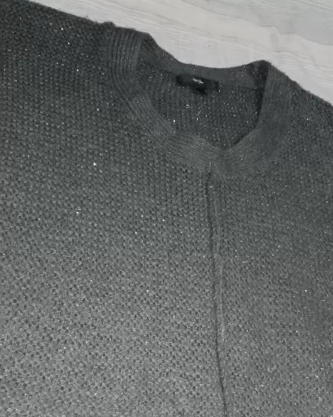 Suéter tejido oversize marca Mossimo color gris con pequeños destellos plata, queda perfecto a talla XL a XXL. Costuras externas que dan un detalle único. Queda perfecto con jeans, pantalón de vesir, tenis, botas, tacones, etc.