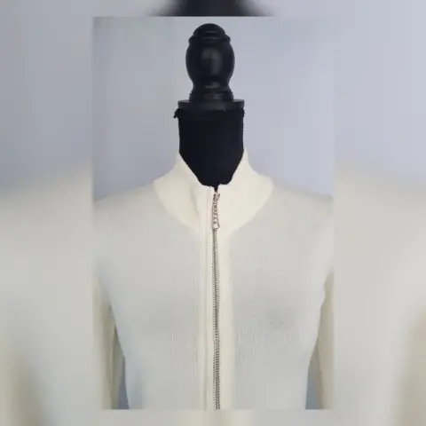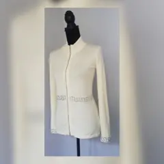 Cardigan en tejido de punto tono MARFIL, cuello Perkins, cierre p/cremallera, aplique bisutería TRANSLÚCIDA en zonas cintura y mangas. Talla CH (AMPLIA, da mejor a M) Dimensiones cms: 32 hombro, 42 axila, 40 cintura, 45 zona baja, 60 largo, 63 largo manga. 73% viscosa, 27% nylon. Para lavado en casa.***EL TONO EXACTO ESTÁ EN LA FOTO NÚM 5******EL BRILLO DEL APLIQUE DE BISUTERÍA ES MUY BELLO Y NO LO CAPTA LA FOTOGRAFÍA***