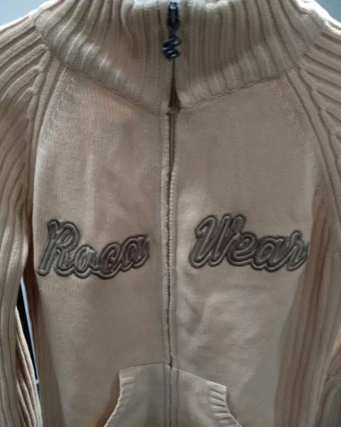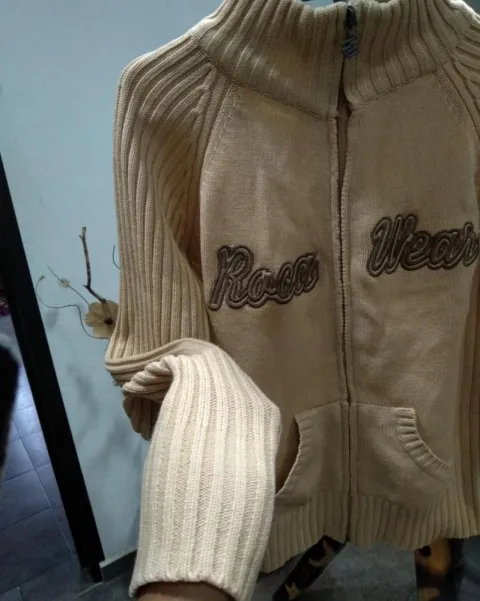 Suéter tejido rocawear con cierre. En buen estado no roto ni manchado es tejido no es muy grueso pero si es calientito,es basico para tu closetMedidas: axila 45 largo 56