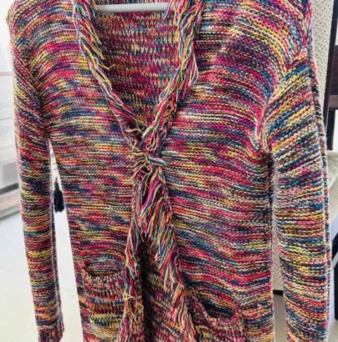 Suéter tejido thats it. Está muy lindo es tejido no tiene ningún botón todo es tejido es súper cómodo por que es ligero no pesa y no es estorboso combina increíble con todo