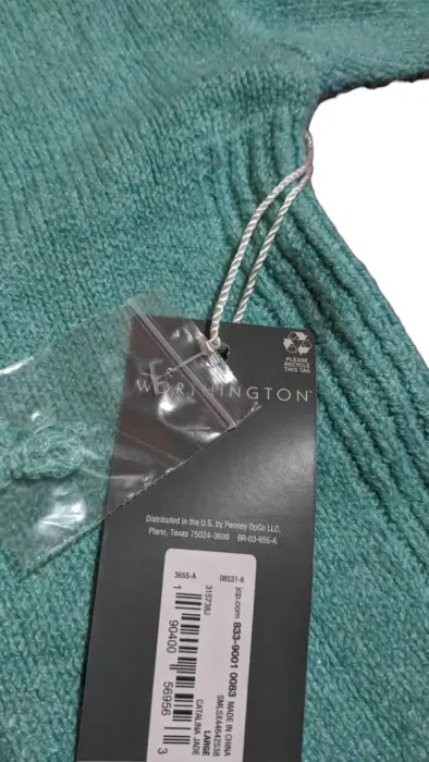 🌻Suéter Tejido Worthington color jade 💚🌻 Suéter tejido de punto manga larga 😊🌻Talla L, que también puede quedar a una talla M 👌🏻😉🌻 Cuello en V 🥰🌻61cm de ancho , 77 cm de largo aprox🌻Aperturas laterales 👌🌻 97% poliéster 🙂 3% Spandex 😉🌻 Súper suave, cómodo y cálido 👌🥰🌻¡Te encantará! 😍🌻NOTA: los colores pueden variar un poco del original dependiendo de la luz y de la cámara 📸