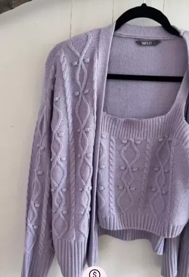 Suéter That’s it 2 piezas lilaTalla LHermosa con blusa de tirantes y suéter