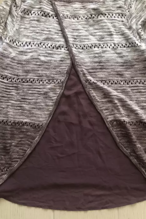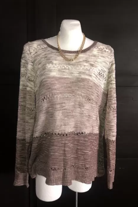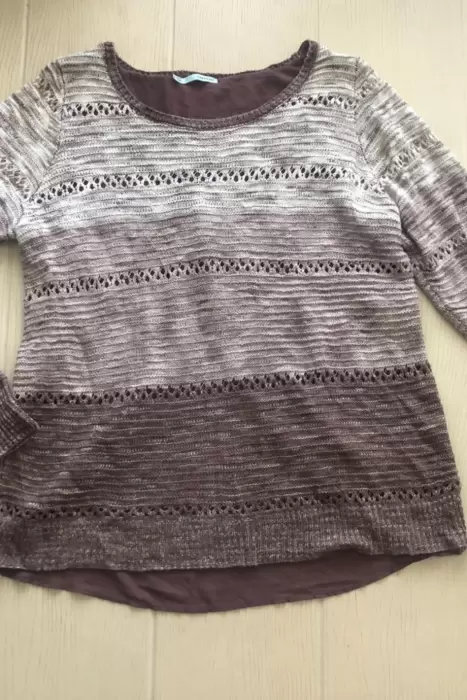 Sueter tipo blusa en tonos cafe, viene con simulacion de camisa debajo, la tela es caladita, por detras trae escote donde se asoma tela de blusa cafe. por la tela debajo no estira. Tela suave al tactoMedidas:Hombro a hombro: 44 cmAxila a axila: 58 cmLargo: 76 cm
