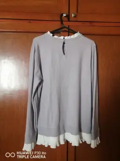 Suéter tipo bluson. Es medida XL, pero es para personas de talla L viene reducido, color lila y detalles en blanco, es algodon