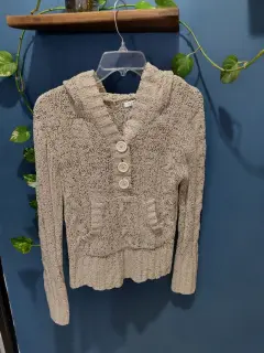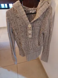 Suéter jaspeado café, muy calientito, ideal para ir a bosque, con gorrito por si llueve