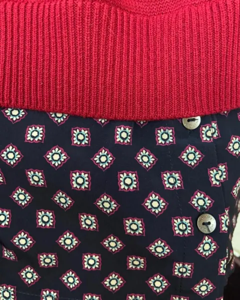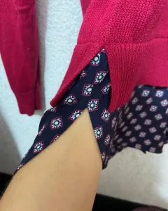 Sueter que simula blusa en la parte de abajo cuello redondo, manga larga. Talla xs sin desperfectos. Puesta 1 vez medidas axila /40 largo/ 60