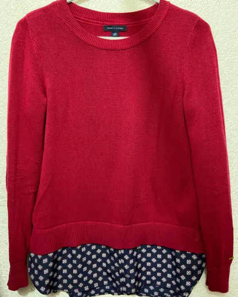 Sueter Tommy Hilfiger. Sueter que simula blusa en la parte de abajo cuello redondo, manga larga. Talla xs sin desperfectos. Puesta 1 vez medidas axila /40 largo/ 60
