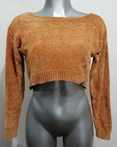 Suéter top dorado suavesito. Suetersito top color mostaza tela suavesita, calientita, super bonito, cómodo, la tela estira. Puedes usar solo o abajo una playerita. Medidas: largo 37cm, contorno inferior(cintura) 90cm,largo Manga 56cm