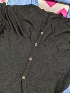 Suéter - Top peplum / botones. Suéter de punto, ligero, negro. Botones al frente, abren por completo. Corte peplum, manga larga. Escote V. Está muy lindo.