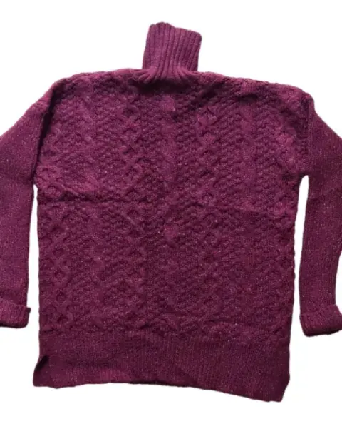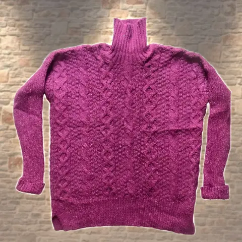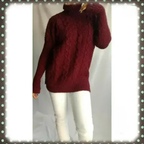 Suéter vino de cuello alto con brillos, marca Jennifer López, talla M, fibras de poliéster y lana.Hombro a hombro 59 cm.Axila a axila 57 cm.Largo total 68 cm.Si te gusta alguna otra prenda de mi closet, podemos negociar el precio.