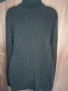 Suéter de cuello alto, color gris. Nuevo, talla M.Suéter tejido, cuello alto, largo.100% algodónHombros: 42 cmAxila: 50 cmLargo: 70 cm