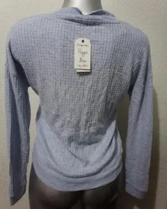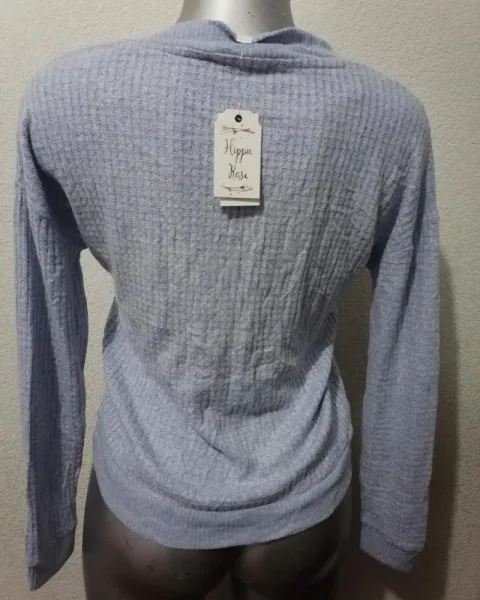 Hermosos suetersito delgadita azul celeste, el hilo da un brillo, que da sotisficacion al suéter. Medidas largo 57cm, axila a axila 52cm, largo Manga 48cm
