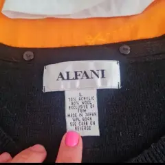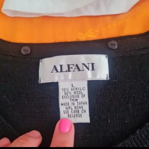 Suter de punto alfani. Tejido de puntoEl único detalle son las bolitas de pelusa q se le pueden quitarEstuvo guardado mucho tiempo así q recomiendo mandarlo a tintoreríaCon botones a todo lo largo del suéterCorte amplioHombros 43cmAxilas 53cmLargo 67cm
