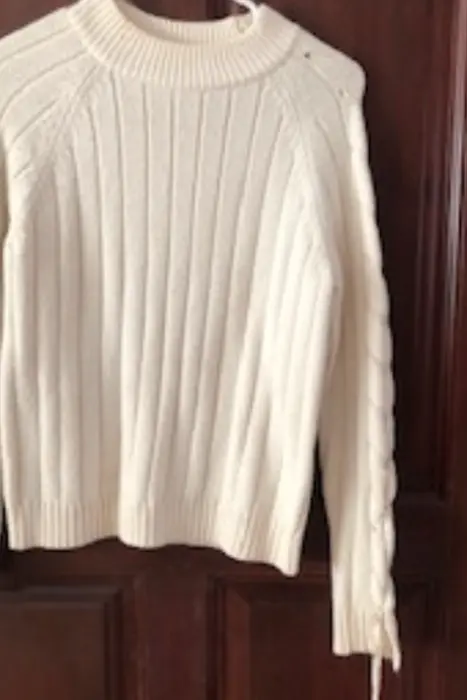 Sweater. Sweater beige talla chica, con detalle trenzado en una de las mangas , marca Benneton