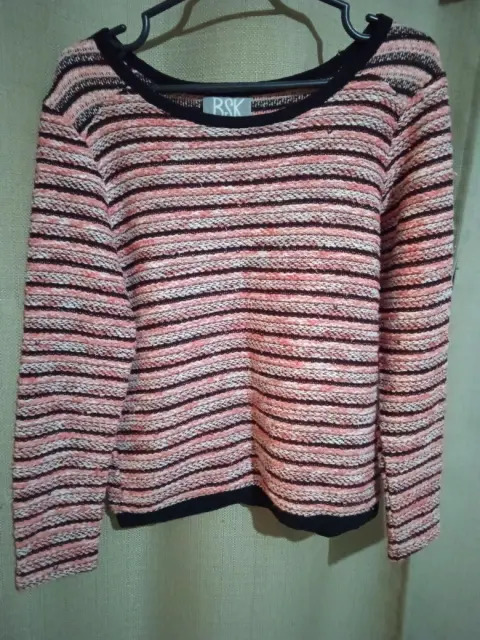 Sweter. Suéter multicolor, manga larga, cuello redondo, y viez color negro.
