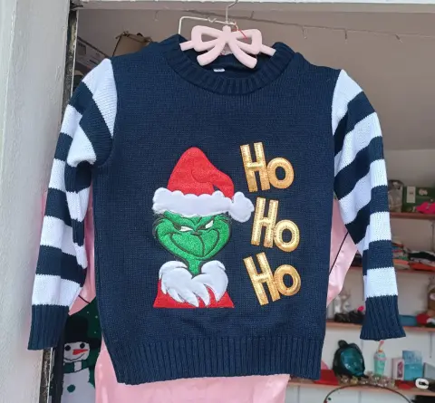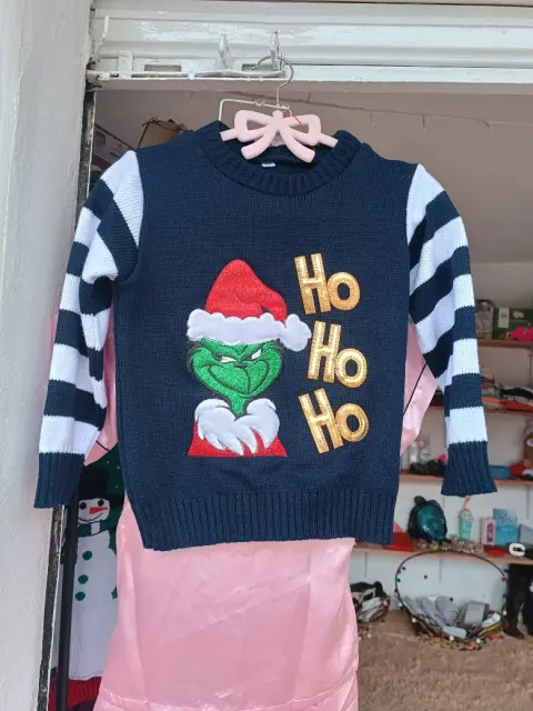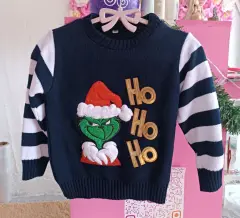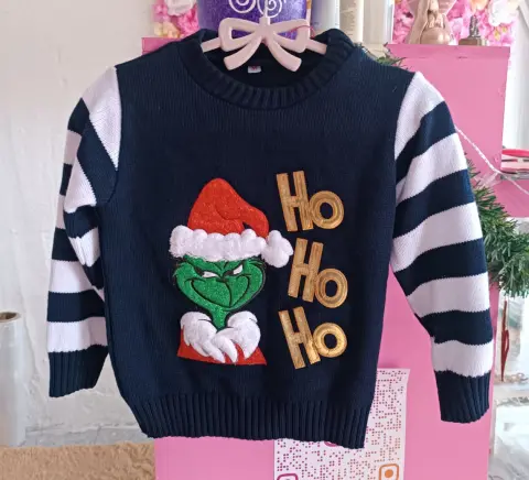 UGLY SWEATER DE GRINCH, TALLA 4/6,MIDE DE HOMBRO A HOMBRO 32.5 CM, DE AXILA A AXILA 38 CM, LARGO 43 CM
