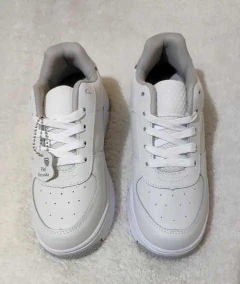 Tenis Moderno color blanco de agujetas, diseño liso el material piel genuina resiente a agua. Estilo casual urbano. Suela Ligera antiderrapante. Número Méxicano #23cm. Pregúntame o Visita mi clóset para más modelos o númeración. En tu primer compra en la App usa mi descuento de -$100 copiando código promocional: lucyrmxXqQJ9