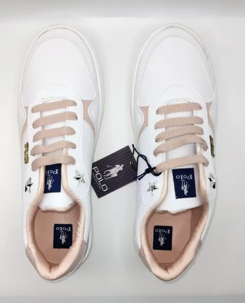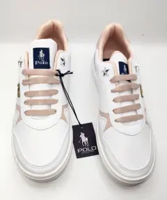 4 Tenis Polo blanco multicolor. Tenis Polo Moderno de agujetas color blanco con rosa y azul, diseño vinipiel de material resiente a agua. Estilo casual urbano. Suela ligera antiderrapante. Número Méxicano #24cm. Pregúntame o Visita mi clóset para más modelos o númeración. En tu primer compra se te hace descuento si eres nuevo usuario en la App.