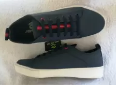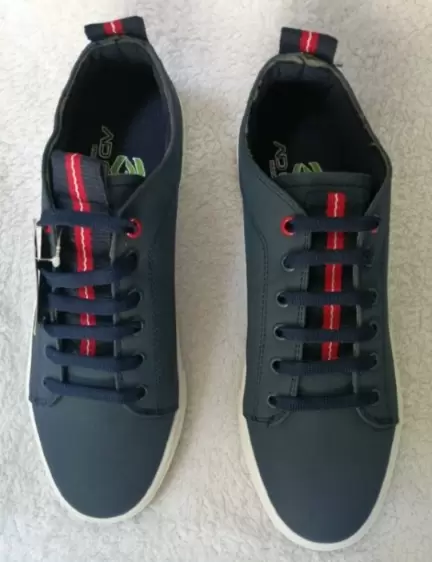 Tenis urbano azul diseño de agujetas con adorno rojo estilo moderno liso suela blanca, ligero cómodo. Numero México #27cm. Visita mi espacio para mas modelos o números. En tu primer compra en la App usa mi código de descuento de -$100 copia: lucyrmxXqQJ9