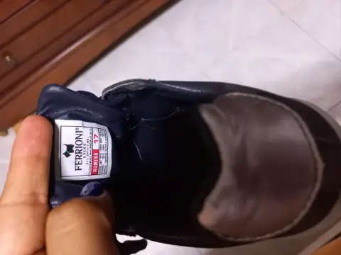 Bonito y cómodo par de tenis casual formal marca ferrioni para niño, color azul, combinable con todo, número 17. Agujetas que corresponden al teni original.