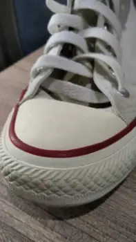 Converse blancos de botín en buen estado, estan un poco amarillos de la parte plástica, tienen un aspecto vintage. No tengo la caja original.