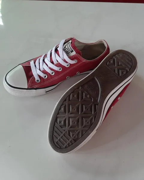 Converse Rojos, sin detalles. En las fotos se aprecia donde dice All Star se está despuntando. Pocas puestas. Suela intactaComodidad caminar!