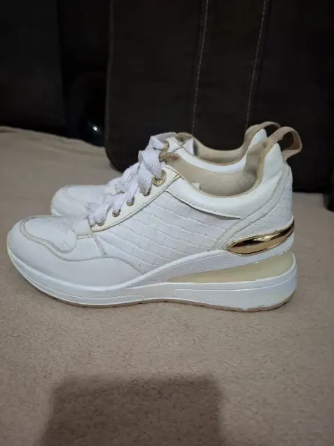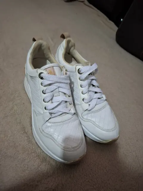 Hermosos tenis aldo. Lindos tenis de plataforma ALDO solo tienen mínimos pero mínimos detalles de uso q en lo absoluto afecta su uso. Grabo todo! Desde que empaco en paquetería demostrando q estoy dando en perfecto estado hasta que se entregue y se selle, por si meten devolución. Gracias 🙏