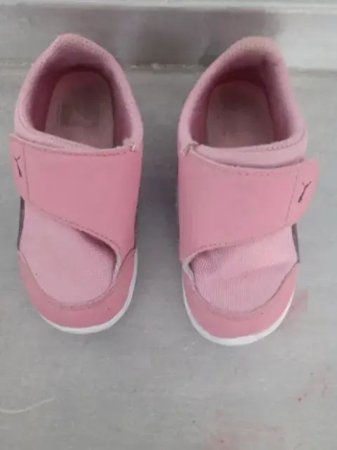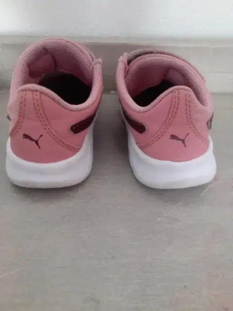 Talla 14, color rosa, Marca Puma, con Velcro, fácil colocar para que te olvides de amarrar agujetas.