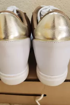 Tenis con monograma grabado.Color blanco.Composición: Exterior: Sintético, Interior: Sintético, Suela: Sintético Antiderrapante.Estos tenis traen plantillas removibles con aumento de altura que miden 3.4cm de alto.Son nuevos sin uso.