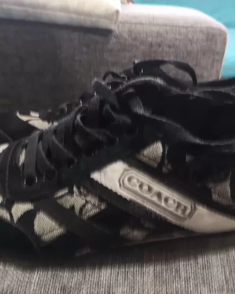 Tenis coach muy cómodos talla 23 viene Amplios, detalle en un costado de uno de los tenis como se muestra en la imagen