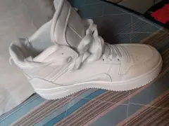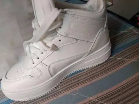 Tenis. No tiene ningún detalle, están completamente nuevos,son de color blanco, y de bota