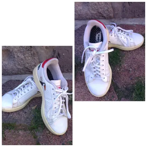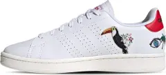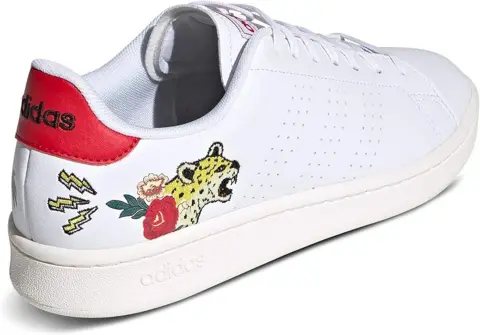 TENIS ADIDAS ADVANTAGE BLANCO ESTAMPADO EH3425. TENIS CASUALES DE PIEL Y BORDADOS EN LA PARTE DE ATRAS, EN LA ETIQUETA DICE #22.5MX PERO QUEDA MEJOR A 23.5 a 24. ESTÁN EN MUY BUEN ESTADO