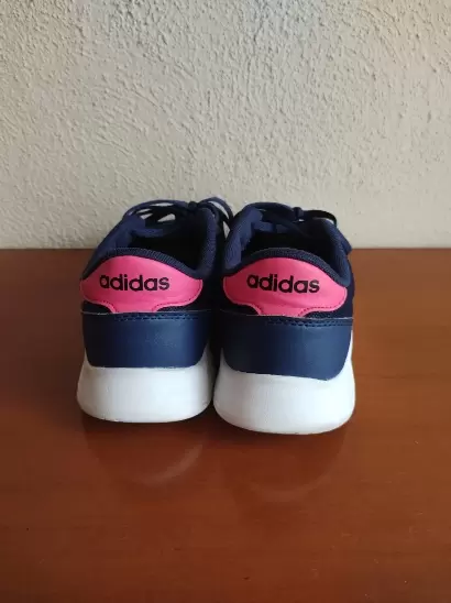 Tenis Adidas azul marino. Super comodos color azul marino con franjas negras y parte trasera rosa, sin ningún detalle se usaron 2 veces, suela en perfecto estado