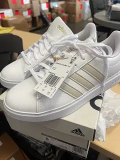Tenis Adidas Grand Court 2.0 nuevos, color blanco con franjas beige, de piso #8, queda 8.5 (5.5)
