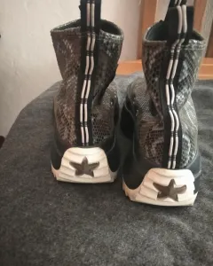 Tenis animal print. Hermosos tenis edición limitada , solo le falta la sujeta q iba en el tobillo nada q afecte su uso están en muy buen estado son 3.5 le van a un 4 Vienen amplios