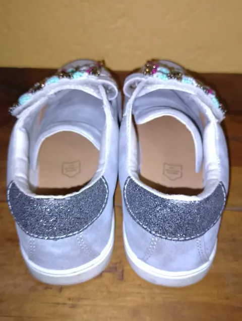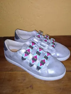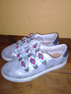 Tenis artesanales en color plata #23, están en perfectas condiciones y son super cómodos. No traen agujetas, únicamente contact, lo que los hace súper prácticos y facil de poner
