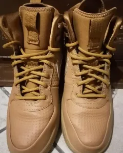 Tenis bota nike. Tenis bota neke talla 27 usado solo una vez color moztaza. La suela está como en la foto es algo que no sale con el lavado. Pero están nuevas