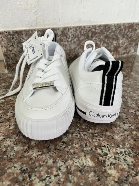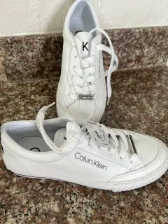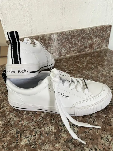 Tenis Calvin Klein Blanco Casual- 100 % original - Sin caja-Se envia en otra caja -Talla 3.5 - Dice talla USA 5.5 pero no -Blanco con detalles negros - tiene etiqueta de la tienda Ross-SIN CAJA SON DE LA TIENDA ROSS PERO SE MANDA EN CAJA