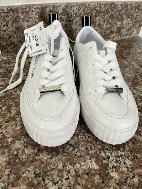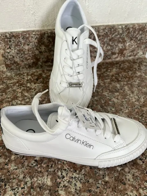 Tenis calvin Klein. Tenis Calvin Klein Blanco Casual- 100 % original - Sin caja-Se envia en otra caja -Talla 3.5 - Dice talla USA 5.5 pero no -Blanco con detalles negros - tiene etiqueta de la tienda Ross-SIN CAJA SON DE LA TIENDA ROSS PERO SE MANDA EN CAJA
