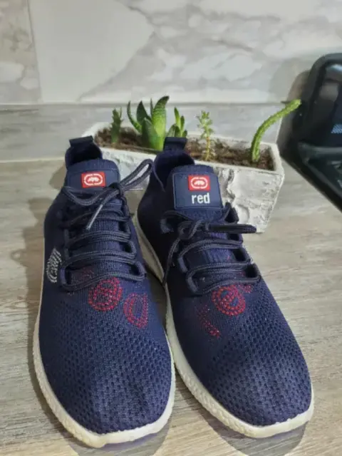 HERMOS TENIS ECKO RED , SUPER COMODOS Y FASHION-TALLA 5.5 MEX. 8.5 USA-AJUSTABLES-TONO AZUL MARINO-LOGO DRL RHINO EN PEDRERIA- SIN CAJA