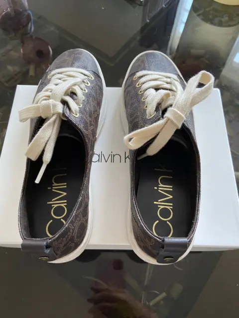 Tenis CK monogram. Tenis para dama #5 en color café con letras marca CK, muy poco uso, incluye su caja original.