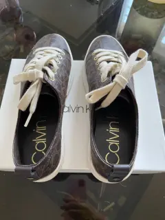 Tenis para dama #5 en color café con letras marca CK, muy poco uso, incluye su caja original.
